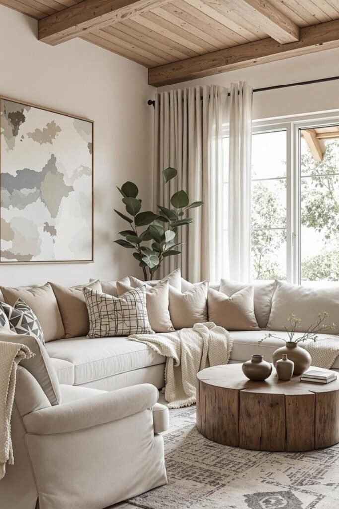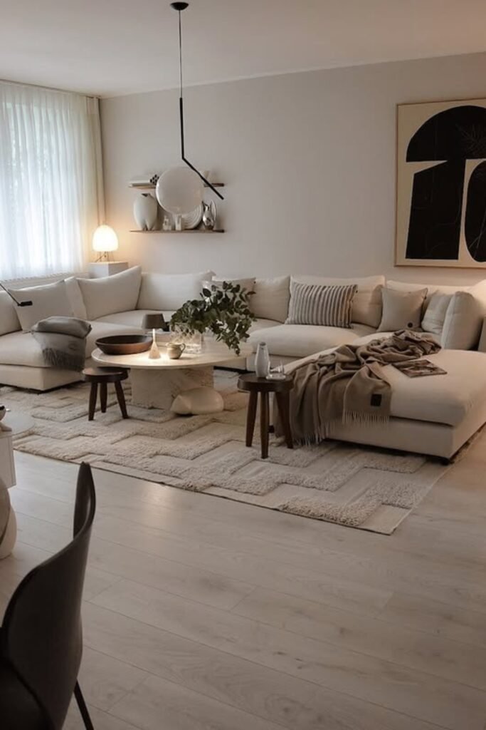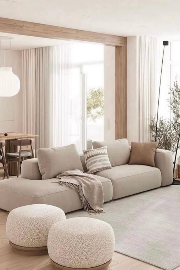 You can layer linen cushions, soft rugs, and natural wood pieces to bring warmth without clutter.