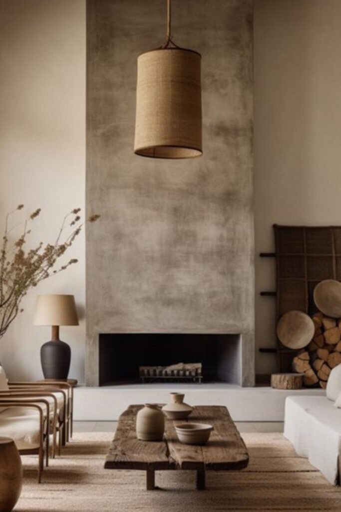You see how the raw plaster fireplace naturally draws attention without extra decor.