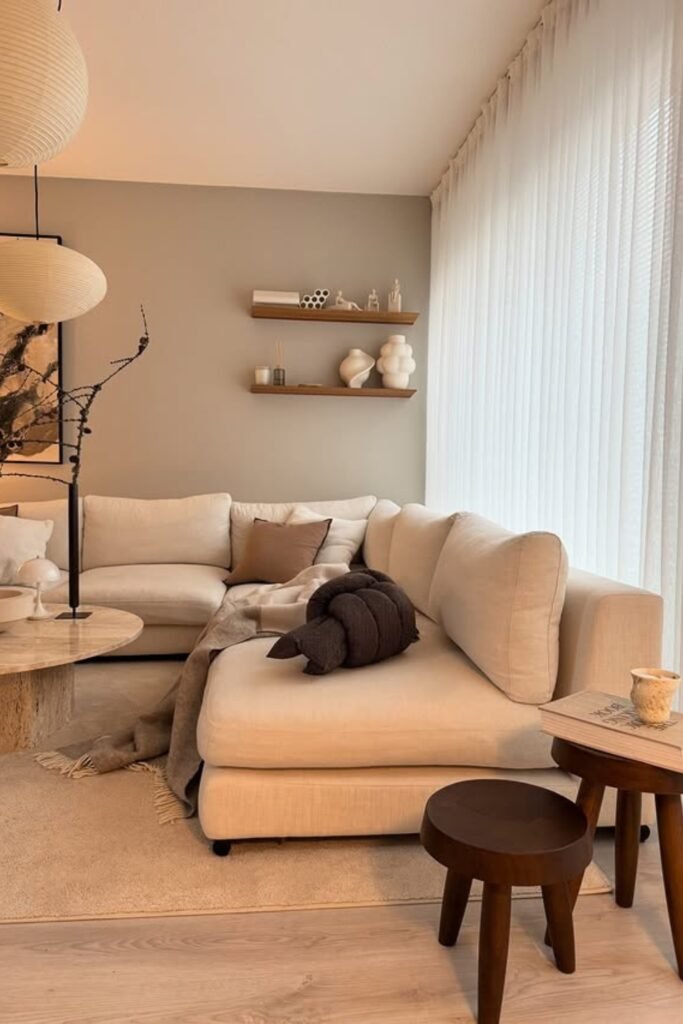 When you pair it with soft neutrals and add one natural element like a tree or plant, you’ll instantly create that calm Japandi feel.