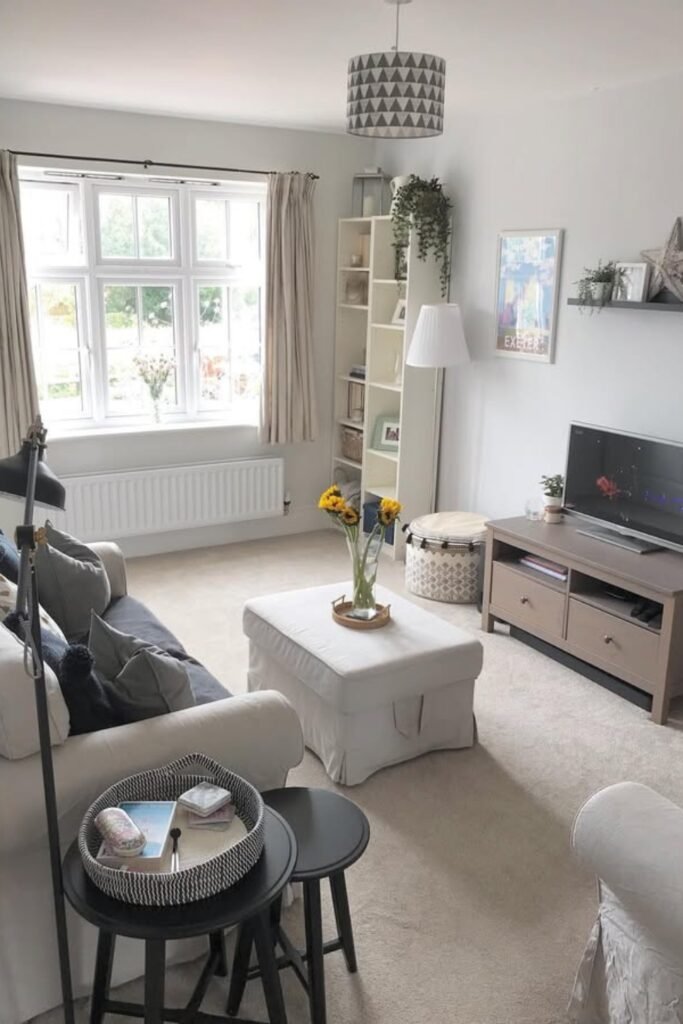 You can let the window do the heavy lifting. Place your sofa against the longest wall and keep your TV unit low so natural light stays the star.